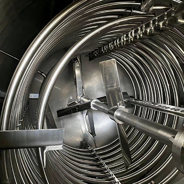盘管与物料直接接触,热传递路径短,可实现较大的换热面积,单位体积传热效率高,适合需要快速升温或精确控温的工艺。